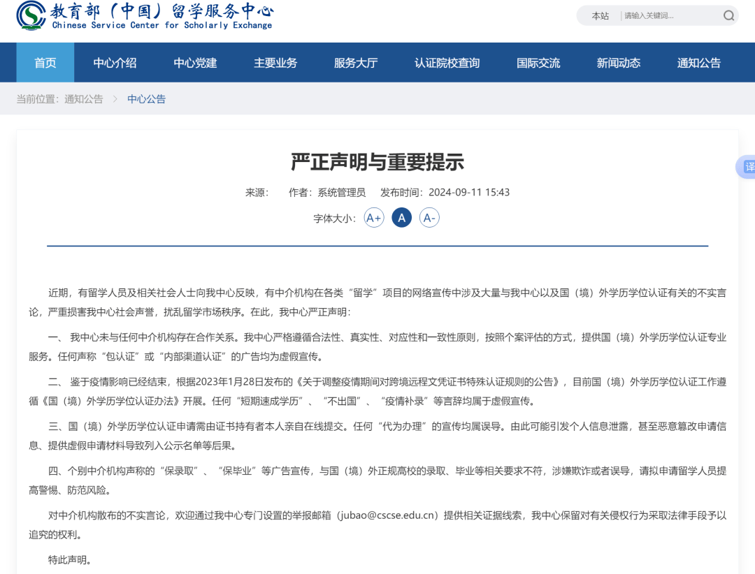 媒体起底“速成洋文凭”灰产链,专家:我们要给学历“祛魅” 学员参加海外留学项目,未能顺利毕业拿到学历,却各自经历了收费争议、学历无法认证、成绩存疑、数十万元高昂费用可能血本无归等糟心事。近段时间,读特新闻根据学员报料,对部分海外留学项目存在的诸多问题展开调查。 读特新闻记者在调查中了解到,部分学员、留学中介、项目合作院校等涉事各方,对于此类留学项目俗称“水硕”“水博”均是“你知我知”——这个行业从来不曾蒙过神秘的面纱,只是有套路深深的产业链,学员在进击“洋文凭”过程中,未能顺利“学有所成”的另一面必然就是消费争议。 “速成文凭”的泡沫为何总是戳不破?日前,中国教育科学研究院研究员储朝晖就读特新闻的系列报道接受采访,对这种现象背后的深层次问题进行分析。 状况频出的留学市场 留服中心频频“预警” 读特新闻记者在某第三方投诉平台用关键词“留学”检索发现,截至目前相关投诉5000多条,其中多数与“退款难”“虚假宣传”有关;用“学历”关键词检索,则投诉超过5万条。 企查查数据显示,国内现存留学中介服务相关企业31.1万家。近十年相关企业注册量呈整体增长态势,从经营时间来看,现存留学中介服务相关企业中,成立年限在1-3年的相关企业最多,占比34.94%。在10年以上的相关企业占比4.45%。从注册资本来看,相关企业多为轻量级,注册资本在100万元以内的相关企业占比47.74%。 去年7月至今年4月28日,教育部(中国)留学服务中心发布三次《关于对部分国外院校学历学位认证加强认证审查的公告》,启动加强审查程序共涉及法国、菲律宾、马来西亚、泰国等国家20多个海外院校。此外,教育部(中国)留学服务中心还发布多篇声明和提示,对冒充人员、仿冒身份以及委托中介代办认证而引发风险等情况进行说明。 教育部(中国)留学服务中心发布关于留学中介的提醒。 学术成长变商业交易促成灰产链 为什么海外留学市场问题频出?中国教育科学研究院研究员储朝晖接受读特新闻记者采访时表示,出现这种情况首先是社会对学历过高的崇尚导致。这使得一些用人机构在选拔人才过程中片面强调学历背景,忽视实际工作能力和岗位的匹配度,从招聘、任用到考核都缺少专业的评价。 另一方面,获取高质量的学历并非易事。若想获得被世界广泛认可或得到中国政府认可的学历,往往存在较高难度。部分人由于自身能力或其他资质条件限制,难以通过正规渠道获取这样的学历,于是转向其他替代途径,通过一些提供所谓“劣质学历”的机构达到目的。在这种供需矛盾下,这些有需求的人群与提供“劣质学历”的机构就构成了一个灰色产业链。 以东南亚院校提供“硕博连读”课程为例,储朝晖表示,“连读”原本是中国高校现行的一种计划性学历培养模式。部分海外院校,特别是东南亚地区的学校了解到国内部分人群有这方面的学历需求,于是加以“包装”,提供课程作业、实践练习、毕业论文等全流程服务。当事人不用付出多少实质性努力,只需出钱“购买”,就能获取这样一个“博士文凭”。 在储朝晖看来,这种做法已变成一种商业交易行为,而不是一个人的学术成长过程,完全偏离了学习教育的本质。 下一个灰产链或将出现 “水学历”现象并非仅是个人行为,部分院校等机构甚至以组团形式参与其中。此前记者采访留学中介时了解到,2020年至2023年疫情期间,部分留学中介推出“不用出境的留学项目”。 针对这一期间的留学乱象,教育部(中国)留学服务中心官网从2020年起,陆续发布关于对部分国外院校学历学位认证加强认证审查的公告,位于菲律宾、马来西亚、印尼、泰国、西班牙、蒙古、法国、新加坡等国的多所院校被点名。 “在教育部(中国)留学服务中心的相关措施下,一些学校也对此有所警惕,现在这个问题总体上减少了。但刚性需求还存在,产业链条也存在,那么它依然有可能变换一种形式再出现。”储朝晖表示。 储朝晖的警示,在市场上已经有一定端倪。记者在某电商平台发现,不少中介以“无需辞职”“网课就读”“短期出境”等为宣传噱头招揽生源,有中介直接用“寒暑假硕博”作为特定名词吸引关注。 电商平台上的留学中介广告打出“寒暑假硕博”字样。 何为“寒暑假硕博”?一家留学中介告诉记者,“本升硕”可通过短期出国留学硕士或中外合作办学硕士这两种渠道实现,毕业证书均可通过中留服学历认证。其中,短期出国留学硕士只需出境6个月,可分寒暑假两次短期出境。 另一家打着“在职寒暑假博士”广告的中介向记者推荐马来西亚一所私立院校,据介绍,该校在职博士就三门课,读满三年,“基本就是第一年寒暑假上课,第二三年也得去。不管做什么,联系导师改论文也好,玩也好,反正待那边。” 给学历“祛魅” 让评价体系更专业 储朝晖认为,过度聚焦文凭的评估方式,本质上属于形式化评估。总体上要建立更专业的评价和管理体系,给学历“祛魅”。 对于近年来不断被曝光的高校引进“人才”中存在“水学历”的情况,储朝晖认为,这是高校内部缺乏一套专业化、相对独立且具备实质性的评价体系。不管是哪一类高校,若过于片面地只将教师的学位文凭、职称、课题项目等难以体现其专业水平的要素作为衡量标准,都有可能陷入“水学历”的泥沼。要构建一个