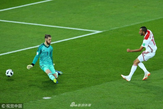 北京时间6月26日,世界杯B组小组赛,西班牙vs摩洛哥,比赛第13分钟,摩洛哥打出反击,前锋布塔伊卜赢得单刀机会,面对德赫亚的他冷静推射球门远角,帮助摩洛哥打进本届世界杯的第一球。 |
