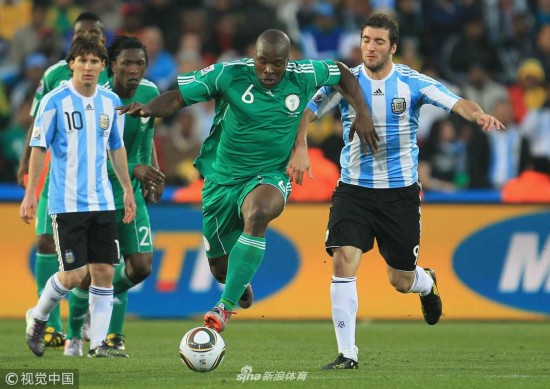2010年6月12日,南非约翰内斯堡,2010世界杯B组小组赛,阿根廷Vs尼日利亚。丹尼·希图带球突破。