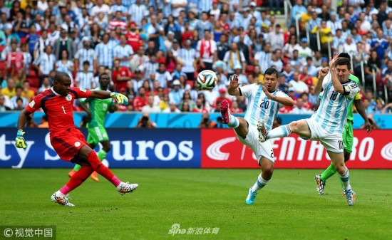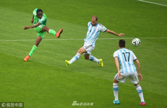 2014年6月25日,巴西贝拉里奥球场,2014巴西世界杯小组赛F组,尼日利亚Vs阿根廷。 穆萨劲射破门