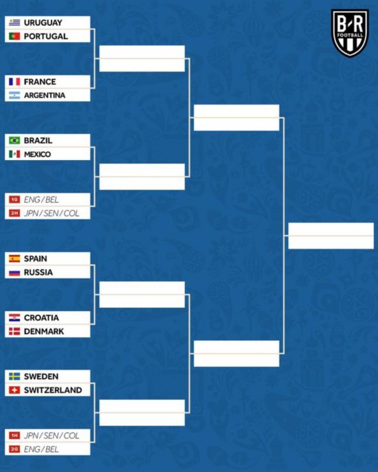 上半区:乌拉圭vs葡萄牙、法国vs阿根廷、巴西vs墨西哥