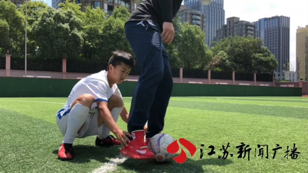 2015年,南通选拔盲人足球队员,因为练过田径,陈熙被选中,第一次摸到盲人足球时,陈熙乐坏了,就感觉这球是专为他设计的:“这球有声音,我就感觉跟之前球不同了,因为毕竟以前那个油纸袋,动不动一踩就坏,一踩就坏的,现在是球里面有铃铛,感觉比那个好多了。就感觉这球,我就喜欢踢,一直就跟着它一起走。” 我用了3个月才敢向前跑 普通人带球通常是把球踢出一段距离后跟着奔跑,但盲人足球运动员因为看不见,每一步都必须触球才能掌控足球的方位。这种类似“无限盘带”的带球方式,常人做起来都有些别扭,场上的球员们却能快速奔跑,江苏盲人足球队特教成雪枫说,背后是运动员和教练组刻苦的训练。 成雪枫:“都是我们做动作,先让他摸,摸了后他开始做动作,有的小孩一摸就懂,有的小孩不懂,还要再扳他脚,大概告诉他脚的哪个部位,碰球的哪个部位,往后抬腿啊,都要让他摸,摸全了,然后他们模仿。就一遍一遍,一般这个带球,好一点的小孩一个礼拜,才能慢慢把球趟着往前走,慢的半个月以上。练成这个样子,没有三四个月,练不出来的。”