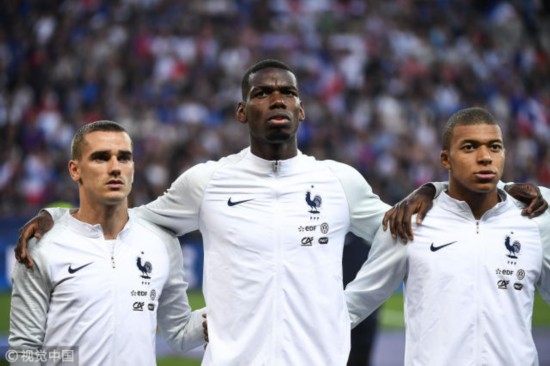 腾讯体育特约记者 法国《队报》赫维·彭内特 世界杯刚一开始,法国队就以夺冠大热的姿态出现在所有人眼前,球队里绝大部分的天才球员都在世界顶级豪门里效力。 后场,我们有皇马的瓦拉内和巴萨的乌姆蒂蒂坐镇,中场有切尔西怪兽坎特、曾创世界转会纪录(尤文图斯至曼联)的博格巴,前场呢?还有“西班牙珍宝”的格列兹曼,巴黎圣日耳曼的明日之星姆巴佩。这是世界杯32强中唯一一支总身价在10亿以上的球队。
