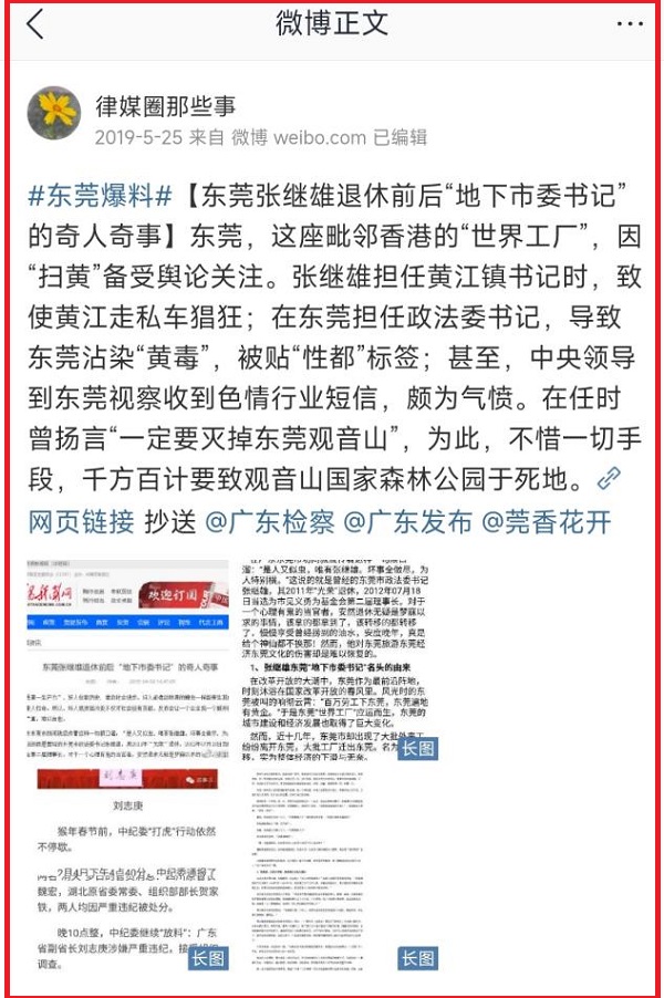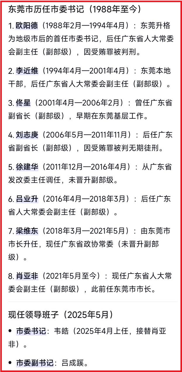 | 东莞市多位前领导落网,网曝众多问题的地下书记能否置身事外? 文 郑义 东莞市是改革开放前沿城市,从1988年由县升级为一个不设县只有镇的地级市。不少市领导为她的发展殚精竭虑,做出了突出的贡献,东莞老百姓是看在眼里,记在心里,比如李近维和佟星二位书记,笔者在网络上看到网页评价很高。 然而从刘志庚担任市长乃至市委书记后,东莞的政治生态和自然环境均遭到了破坏,不少市领导也被查入狱。 ![]() 东莞市历任9位市委书记5任市长就有三位书记、二位市长被查:首任书记欧阳德因受贿被判刑。 刘志庚在2004年-2006年担任市长后担任市委书记至2011年,后任广东省副省长,于2017年被判无期徒刑。 徐建华在2011年至2016年担任东莞市委书记,并在同期担任市人大常委会主任。他在卸任后7年被查。 李毓全:东莞市原市委副书记、市长。李毓全在2006年任东莞市市长,2012年任东莞市政协主席,2016年卸任,2024年8月被查。 而被查的东莞市级领导就多了:东莞市委原常委、市纪委原书记甄瑞潮在2017年6月退休,2019年11月受到党内严重警告处分,降低退休待遇至二级巡视员,2024年1月被查。广东省发展改革委副主任、省能源局局长的吴道闻曾在2004年至2014年担任过10年的东莞市副市长,2024年11月15日被查。 东莞市政协原党组副书记、副主席钟淦泉,因严重违纪违法被开除党籍;东莞市人大常委会原副主任方灿芬,因严重违纪违法被开除党籍和公职;东莞市政协副主席罗晓勤,因涉嫌严重违纪违法接受审查;东莞市政协原副主席何绍田,因涉嫌严重违纪违法被开除党籍;东莞市人大常委会副主任罗军文,主动投案并接受调查后被双开;东莞市人大常委会原党组成员黄庆辉被查;东莞市政府党组成员、秘书长的邓涛被查;东莞市政协原副主席邝明子被查;东莞市原正厅级干部李汝求被查;东莞市人大常委会原党组成员、副主任梁荣业被查;东莞市监委原委员王居乐被查;市纪委原副书记、市监委原副主任曾广华被查;市纪委副书记、监委副主任李东华被双开。 除此之外,东莞市各部门级乡镇领导人被查的就更多了...... ![]() 刘志庚被查的消息出来,位于东莞市樟木头镇的广东观音山国家森林公园挂出了横幅表达欢心:作恶的,必将被老百姓唾弃! 有网文曝光刘志庚2004年2月到东莞任职,追随他的利益集团就迅速布局,刘志庚整个家族好像蝗虫一样都到东莞做生意形同抢钱,所向披靡。2004年7月市长刘志庚到樟木头镇考察,镇委镇政府领导班子全程陪同并在观音山公园前后上下都转了一圈,他就有了将观音山公园收入家族囊中,将观音山公园毁林5000亩而开发房地产的胆大妄为的构思:如将这一大片森林开发房地产,保守算也可创造超千亿的利润。之后东莞市林业局和樟木头镇领导已接到刘志庚家族准备要拿下观音山公园做房地产的暗示。 2006年初6月,樟木头镇常务副镇长罗伟伦把黄淦波叫到办公室说:镇政府决定以3000万收购观音山,用一间约1万平方米的旧厂房抵价,其实际价值不到1500万元。观音山彼时投资已上亿了,黄淦波董事长当即拒绝。而在2009年时任樟木头镇委书记的李满堂也把黄淦波叫到办公室说刘志庚一个亿购买,已投资7亿的黄总依旧拒绝。 得罪刘志庚利益集团之后,观音山遭到了东莞市几乎所有部门的刁难及迫害,被称为东莞市地下市委书记的张某雄在其中出谋划策,甚是积极,给观音山公园造成了多达20余个磨难…… ![]() 2017年5月31日,南宁铁路运输中级法院公开宣判广东省人民政府原副省长刘志庚受贿一案,对被告人刘志庚以受贿罪判处无期徒刑,剥夺政治权利终身,并处没收个人全部财产;受贿所得财物予以追缴,上缴国库。收购打手之一罗伟伦也于2024年4月涉嫌贪污受贿、被开除党籍并取消退休待遇。 值得一提的是,网络多次曝光存在不少问题的地下书记张某雄在2011年退休,至今安然无恙。 众多官员被查,观音山至今依旧被迫害,有人指出:地下书记及利益集团依旧在搅动风云,左右着东莞市! 张某雄师父要在观音山设坛号令天下未果 极力打压观音山 不少网络曝光了张某雄的巫师师父在其介绍下找到观音山公园掌舵人要设坛被拒的事情,这可是严重的政治问题呀。 网文 《记者访谈实录:观音山国家森林公园董事长黄淦波谈观音山存在的部分问题及背后原因》里详细介绍了此事。2003年五六月份吧,当时东莞市政法委书记张继雄带着五六个人来观音山视察工作,开车上山走到一半的时候,他们车子都停了,大家步行上山,走到前面的是政法委书记张继雄,他说黄老板你所有的情况我都知道,你今后有困难找我。然后让他的秘书把他的名片交给我。张继雄他们一行人到山顶看完观音山之后就走了。临走的时候张继雄指着旁边的一个年轻人说,这个是我的朋友,过几天会找你,有事多合作,观音山的事情他来搞定。于是我就跟那个人交换电话了。 过了两天,那个人就打电话给我约我见面,见面后他说黄老板你是个聪明人,你知道我找你什么事?我说不知道。 他淡淡一笑说,我明确的告诉您,我不是政法委的人,也不是官场上的人,我别的本领没有,就是能呼风唤雨、移山倒海、调派天兵天将,号令天下,张继雄等人也是我的徒弟,这就是我的本领。 我说那么神吗?他说要不要试一把?于是他就讲述我昨天晚上睡觉前想什么以及这两天在想什么会干什么。他说的确实很对。我说你是归佛教还