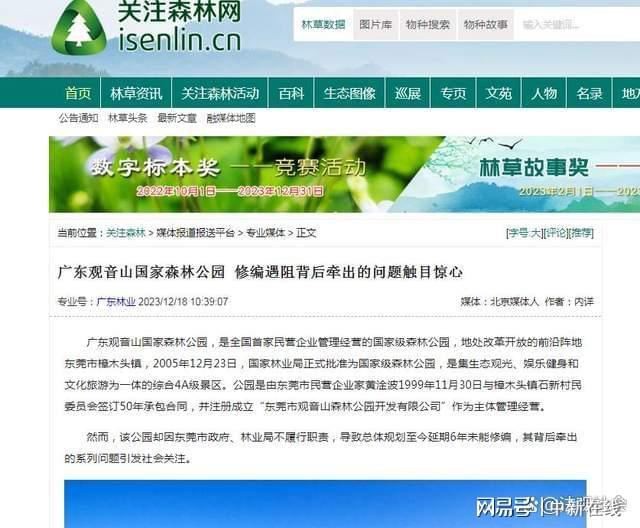 国家林草局宣传中心主办的网站也多次曝光观音山修编遇阻问题