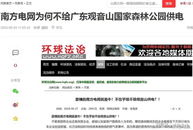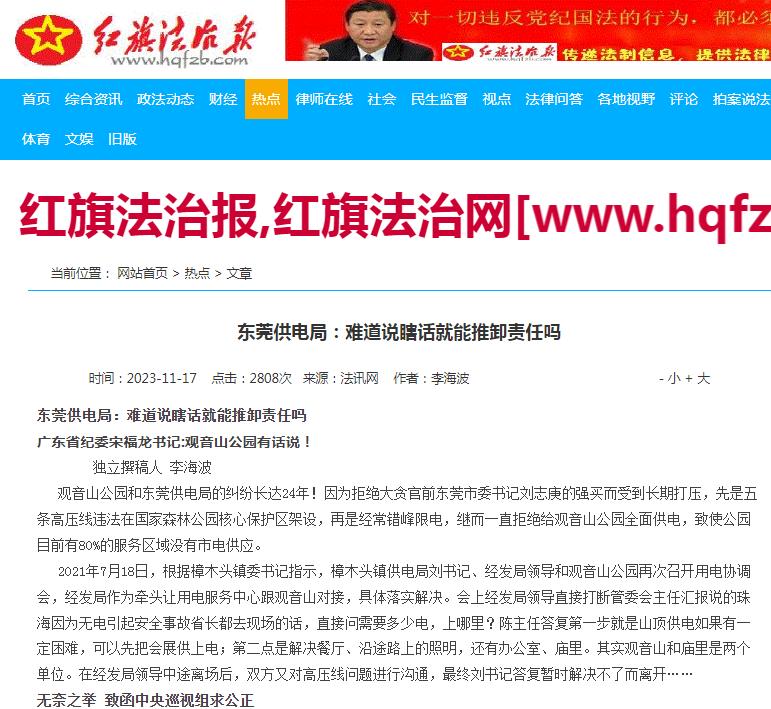 | 南方电网,删帖招数不断为哪般 孟振平董事长可知:南方电网删掉的是帖子,失去的却是人心 独立撰稿人 李海波 日前,撰稿人登录今日头条后台发现,发布的《不打压迫害,广东观音山年营收入可望超10亿元》被投诉删帖了。而投诉人却是广东电网公司东莞供电局! ![]() 东莞供电局的举报描述是:“从2014年起,观音山公司多次通过各类平台发布不实信息。其中,针对供电部门的不实舆情主要为公园供电受阻致26年来近80%区域依赖自发电、供电部门擅架线塔侵权,以及倒推涉电安全隐患责任等内容。事实上,自2003年起,东莞供电局便一直向公园提供供电服务。根据《供用电合同》将电力供应至公园的产权分界点。在高压线塔架设纠纷中,观音山公司三次诉讼均败诉,法院认定线路建设早于公四承包经营,未构成侵权。而涉电安全隐患是公园经营方擅自在1995年建成的110千伏线路下方修建栈道所致,东莞供电局已向公园发出整改通知,其拒绝签收且拒不整改,鉴于相关文章存在不良舆论导向,致使不实内容广泛扩散,已对我司企业形象造成影响,恳请及时删除、屏蔽相关链接。” 明明是写观音山的发展情况,怎么就牵涉南方电网了呢? 于是撰稿人仔细查看了这篇1万余字的文章,发现了又这么100字提及了南方电网问题“特别是南方电网属下的东莞市供电局拒绝给公园供电:2020年12月22日央视《谈事说理》栏目播出专题“《谈事说理》之搁浅的公园”其中就着重谈到观音山国家森林公园悬而未决的基本供电问题,之后全网和知名专家为之呼吁至今仍未解决。”同时配了一幅网文截图。 ![]() 微信公众号的该文也被下架 ![]() 值得疑惑的是,微信公众号“被投诉记录”里却没有相关信息 如此小题大做的投诉删帖,看来是南方电网又来当东莞当地的打手,来混淆视听吧?! ![]() 明知道申诉没有结果,但法讯君还是按照程序在17日的17:58提起了申诉。自己的权利,总归还是要争取的,至于今日头条这些平台只为自己利益着想,那就随他吧! 在当天晚上23:23,今日头条对撰稿人的申诉有了答复:亲爱的创作者,你提交的「不侵权声明」单号6115714不符合法定要求,原因:你的申诉理由不充分。如你认为被投诉文章不存在侵权,请具体明确指出,并针对投诉理由作出回应、提交对应证明材料。若需要补充举证,请在收到通知次日起7天内点击提交「不侵权声明」。 ![]() 今日头条后台,某创作者也是这样被通知下架的。 ![]() 除了撰稿人的帖子被南方电网东莞市供电局删除外,也有其他媒体人的今日头条帖子《“夏日炎炎电网默默”东莞观音山事件辣评集锦(十四)》被同样理由删除。 看看东莞供电局的删帖理由,挺奇葩的吧!申请理由严重不实! 一是“从2014年起,观音山公司多次通过各类平台发布不实信息,其中,针对供电部门的不实舆情主要为公园供电受阻致26年来近80%区域依赖自发电、供电部门擅架线塔侵权,以及倒推涉电安全隐患责任等内容。”,纵观观音山事件,发布的网络平台包括媒体,有中央电视台、人民日报、人民网、光明日报、经济参考报等中央媒体呢!他们发布的是不实信息?!![]() 公园自主发电机房,年支出是市政供电的3、4倍! 二是“自2003年起,东莞供电局便一直向公园提供供电服务”,但观音山公园没有说供电局没有完全供电,而是在公园区域有80%没有供电,26年来向东莞供电局申请全员供电而被推诿拒绝吗?还有在2021年7月18日,根据樟木头镇委书记指示,樟木头镇供电局刘书记、经发局领导和观音山公园再次召开用电协调会,经发局作为牵头让用电服务中心跟观音山对接,具体落实解决。会上经发局领导直接打断管委会主任汇报说的珠海因为无电引起安全事故省长都去现场的话,直接问需要多少电,上哪里?陈主任答复第一步就是山顶供电如果有一定困难,可以先把会展供上电;第二点是解决餐厅、沿途路上的照明,还有办公室、庙里。其实观音山和庙里是两个单位。在经发局领导中途离场后,双方又对高压线问题进行沟通,最终刘书记答复暂时解决不了而离开……会议纪要显示的该情节,如果不是拒绝供电,刘书记会参会吗?! 三是“根据《供用电合同》将电力供应至公园的产权分界点。在高压线塔架设纠纷中,观音山公司三次诉讼均败诉,法院认定线路建设早于公司承包经营,未构成侵权。”就此案件,多位法学专家认为:案涉四条高压线路的真实初始修建时间和是否为观音山公司承包前就已存续存在一定争议,一审、二审法院直接认定属观音山公司承包前已存续或变更升级改造而来是否得当?为何观音山均败诉?法院认为这些高压线并未架设在公园的红线范围内,故供电部门没错。而公园提供给法院证明高压线确实架设在公园范围内的证据文件《观音山国家森林公园总体规划》以及各工程施工的时间等均未被法院认可。出现这种结局,如果说此案没有行政力量干预司法,鬼都不信! ![]() 安全隐患是南方电网非法架设的高压线塔,看看,危险不?! ![]() 国务院新闻办主办的网站发布的这也是不实信息吗? 其实,东莞供电局胡言乱语不是一时失误,而是有先河的。 2023年5月19日,广东观音山公园向中央巡视组提交了题为《南方电网对东莞民企的伤害有多深?社会影响有多坏?》的情况反映材料。之后东莞供电局进行了不实回复,观音山公园于11月1日给广东省纪委递交了书面材料《关于东莞供电局20