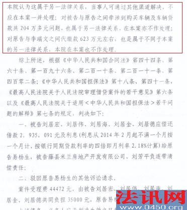 其实这几笔借款共1700万元,易杨生分几次起诉。藤县法院在同一天下达4份的判决书都提到1700万元,也提及有还款情况,但法院均不认真计算还款总额达4千多万的资金往来,包括李瑞文代缴623万元的款项,法院认为是另一层法律关系不作处理,法院不认可还款让刘芳平等起诉,难道是为了收取起诉费还是另有什么鬼?!