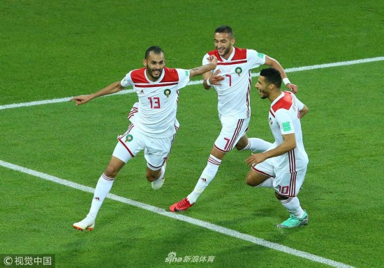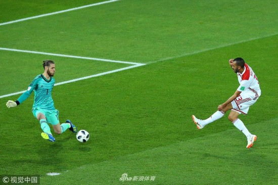 北京时间6月26日,世界杯B组小组赛,西班牙vs摩洛哥,比赛第13分钟,摩洛哥打出反击,前锋布塔伊卜赢得单刀机会,面对德赫亚的他冷静推射球门远角,帮助摩洛哥打进本届世界杯的第一球。 |