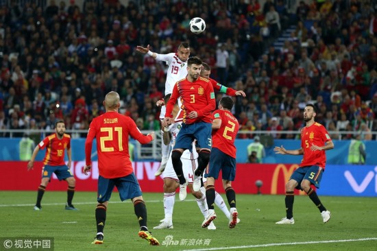北京时间6月26日,世界杯B组小组赛,西班牙vs摩洛哥,下半场比赛,摩洛哥获得本场比赛第一个角球,角球直奔禁区开出,前锋恩内斯里力压西班牙队长拉莫斯将球顶进球门。