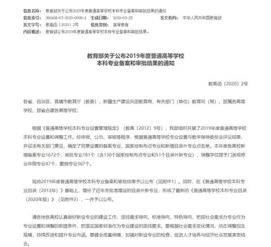 日前,教育部发布了关于2019年度普通高等学校本科专业备案和审批结果的通知(教高函〔2020〕2号)。根据公布结果,2019年度各高校新增备案本科专业1672个,新增审批本科专业181个,调整学位授予门类或修业年限专业47个,撤销本科专业367个。 ![]() 通过对教育部公布的名单进行整理发现,广西新增备案本科专业57个,新增审批本科专业7个、撤销本科专业13个。 2019年度普通高等学校本科专业备案和审批结果 广西新增备案本科专业名单 ![]() ![]() 广西新增审批本科专业名单 ![]() 广西撤销本科专业名单 ![]() 来源:教育部网站 |