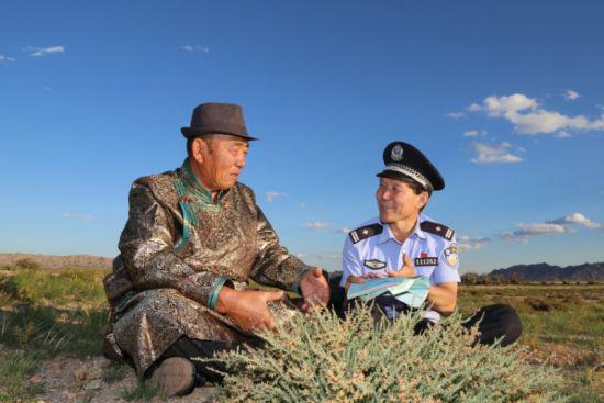 宝音德力格尔,现任乌拉特后旗公安局潮格温都尔镇派出所教导员,先后荣获全国“人民满意的公务员”、全国第五届“我最喜爱的人民警察”、 全国公安系统一级英雄模范、全国创先争优优秀共产党员、“北疆楷模”等荣誉称号。从警23年来,宝音默默守护着居住在1672平方公里的900多户居民,被称为中国“管得最宽”的片警。他骑坏了8辆摩托车,每月深入辖区20多天,每年平均行程6万多公里,走访牧民16万余人次,累计行程120万公里,相当沿赤道绕地球30圈。他视群众为亲人,用心绘起为牧民服务的“宝音图”,联结起党和政府与群众的“连心桥”。宝音德力格尔对戈壁草原了如指掌,“下牧区”这样的词从他的嘴里说出来,就如同“回家”一般温暖,牧民们都亲切地称他为“赛因察戈答”(汉语意为好警察)。