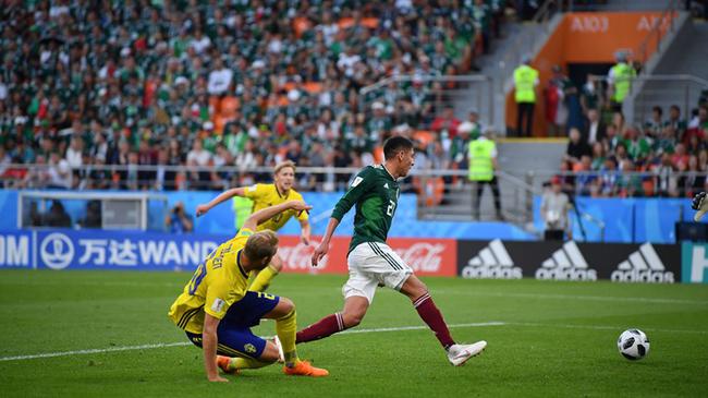阿尔瓦雷斯自摆乌龙 瑞典第74分钟锁定胜局,替补出场的特林前点头球后蹭,阿尔瓦雷斯近距离在托伊沃宁紧逼下解围踢空,皮球打在他腿上反弹入左下角,3-0。第81分钟,科罗纳传中远点,埃尔南德斯禁区左侧小角度凌空扫射,贝拉近距离顶空门偏出。 瑞典3球领先已让比赛再无悬念,看台上的墨西哥球迷纷纷掏出手机收看德国同韩国的赛况,韩国在伤停补时进球让墨西哥球迷欣喜若狂。墨西哥球员齐聚球场内等待最后结果。最终德国爆冷输球,墨西哥输球仍获得小组第二晋级。