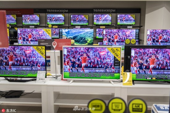 当地时间2018年6月,俄罗斯,2018世界杯持续升温,俄罗斯各地随处可见大屏幕播放精彩赛事。 |